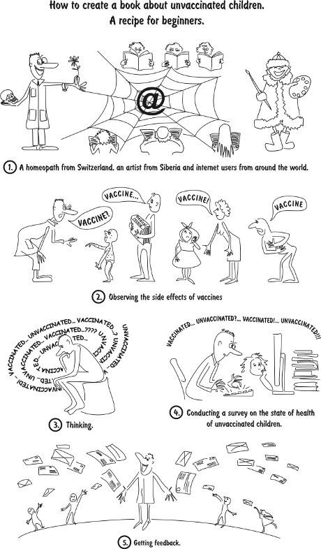 This illustration shows the the origin story of VACCINE FREE, illustrated by Alena Ryazanova.